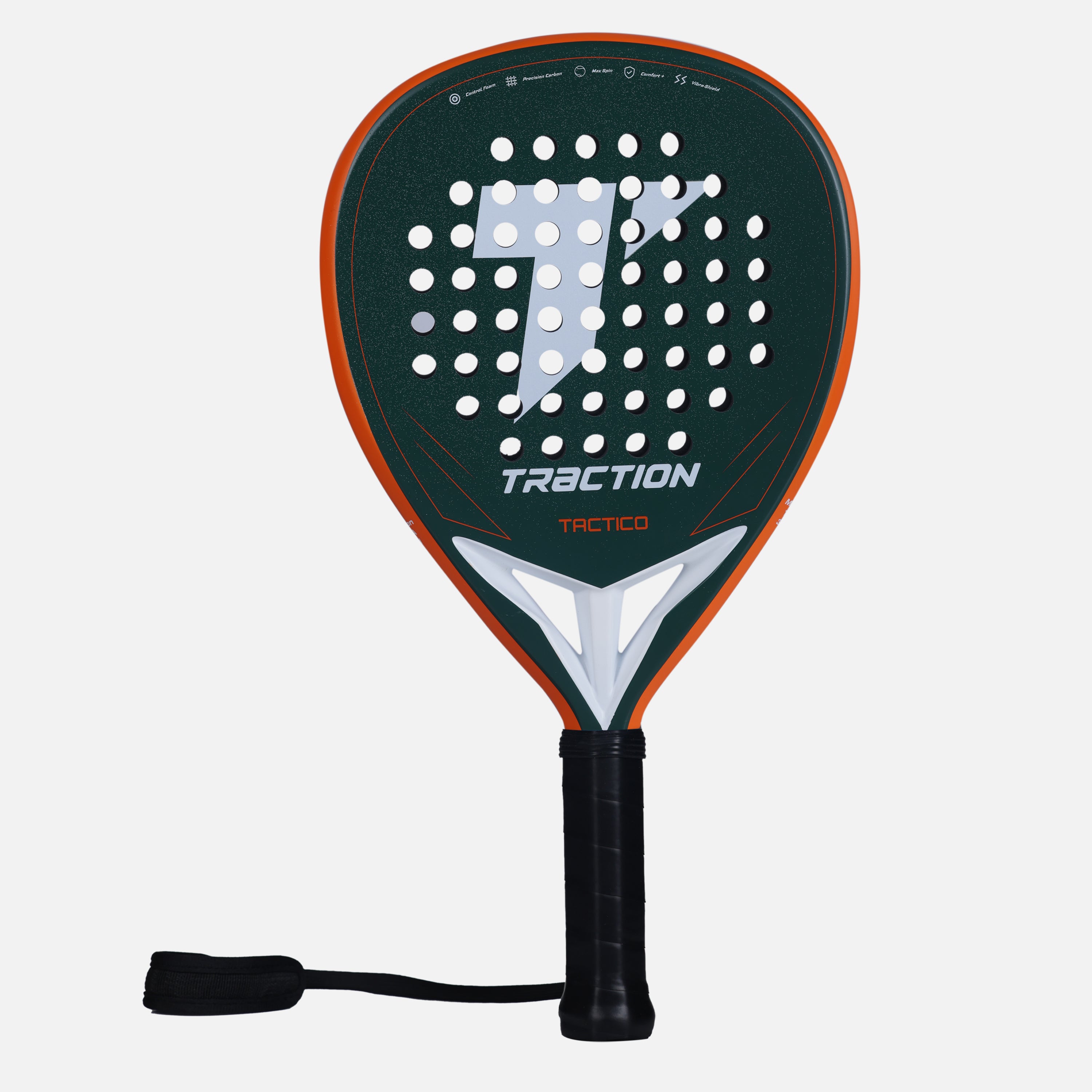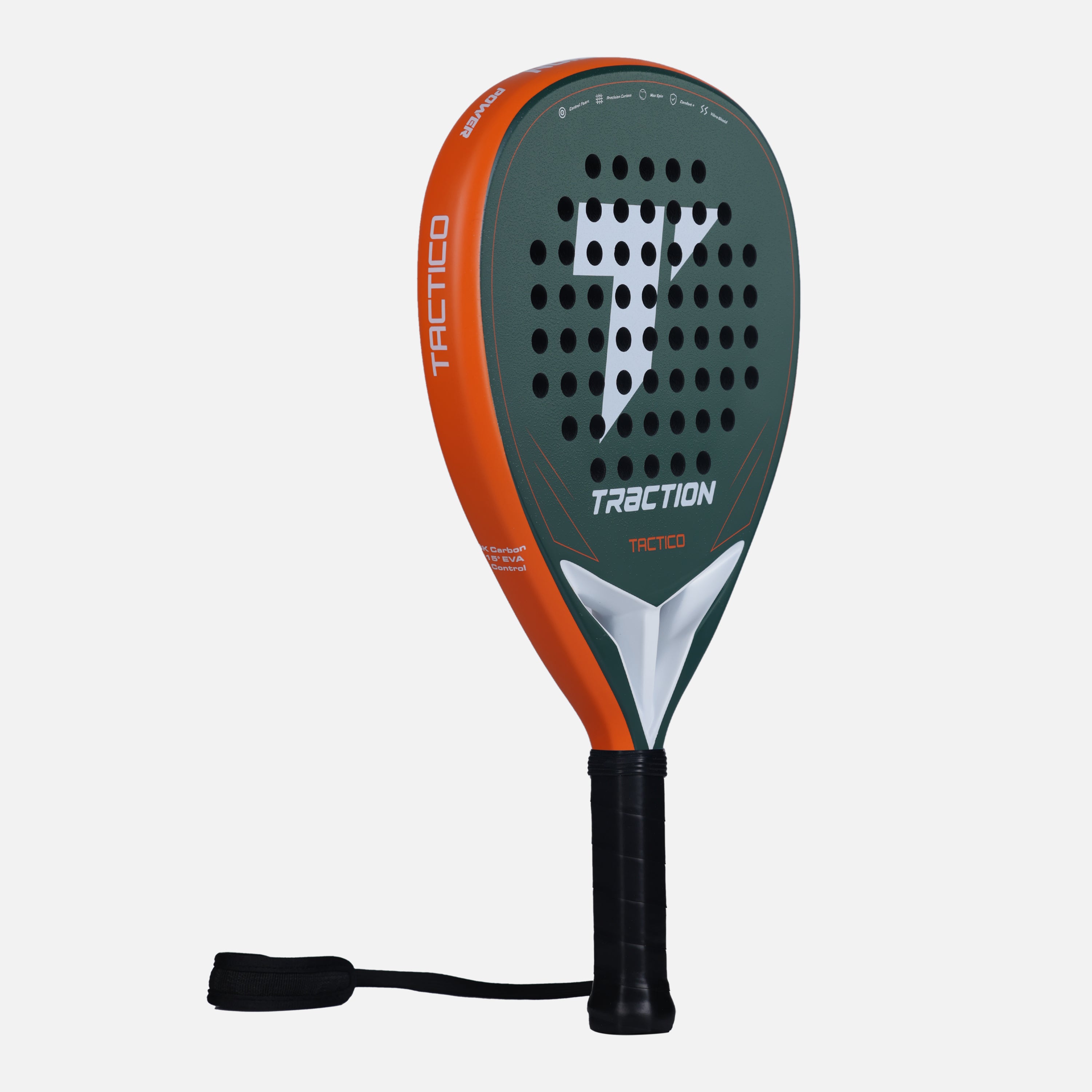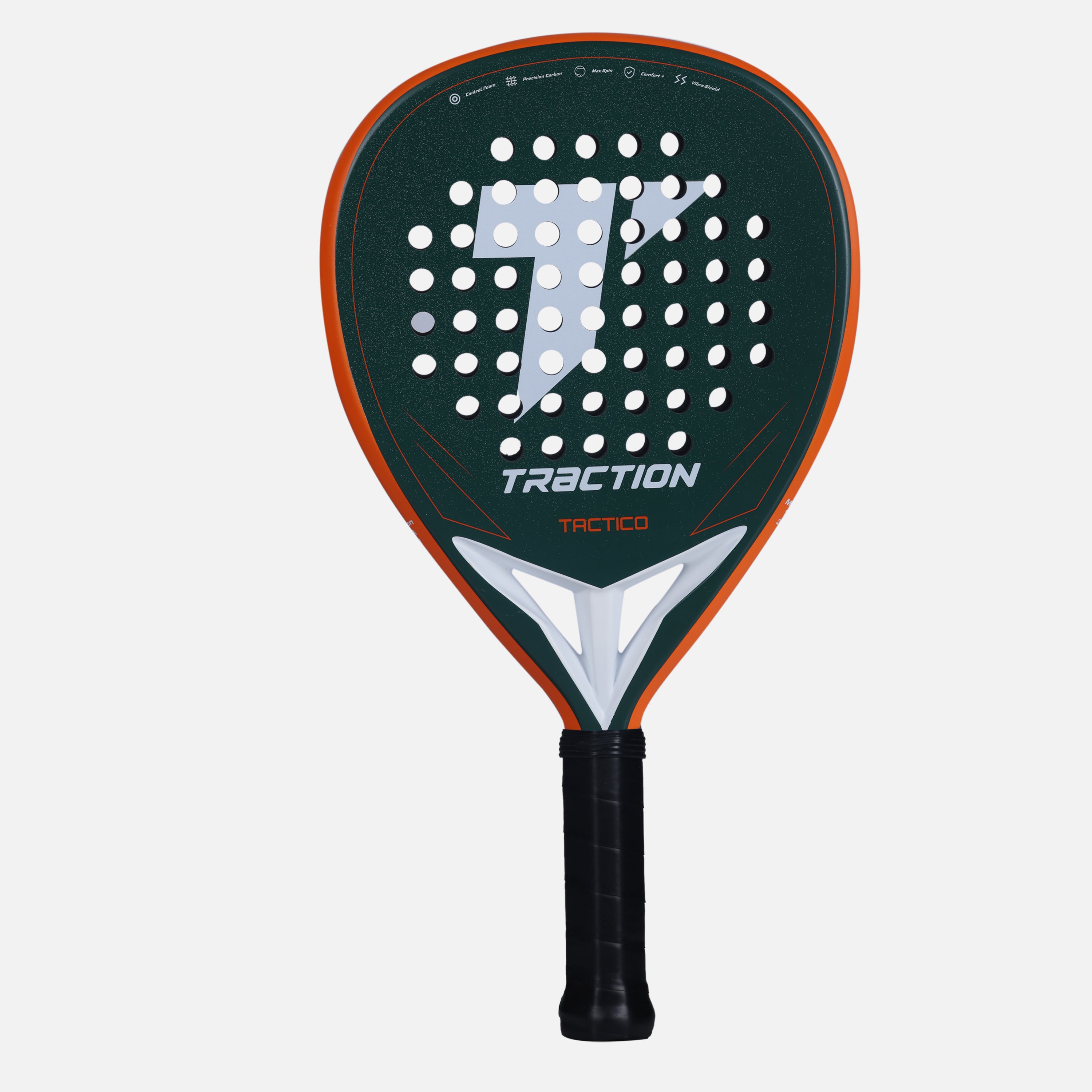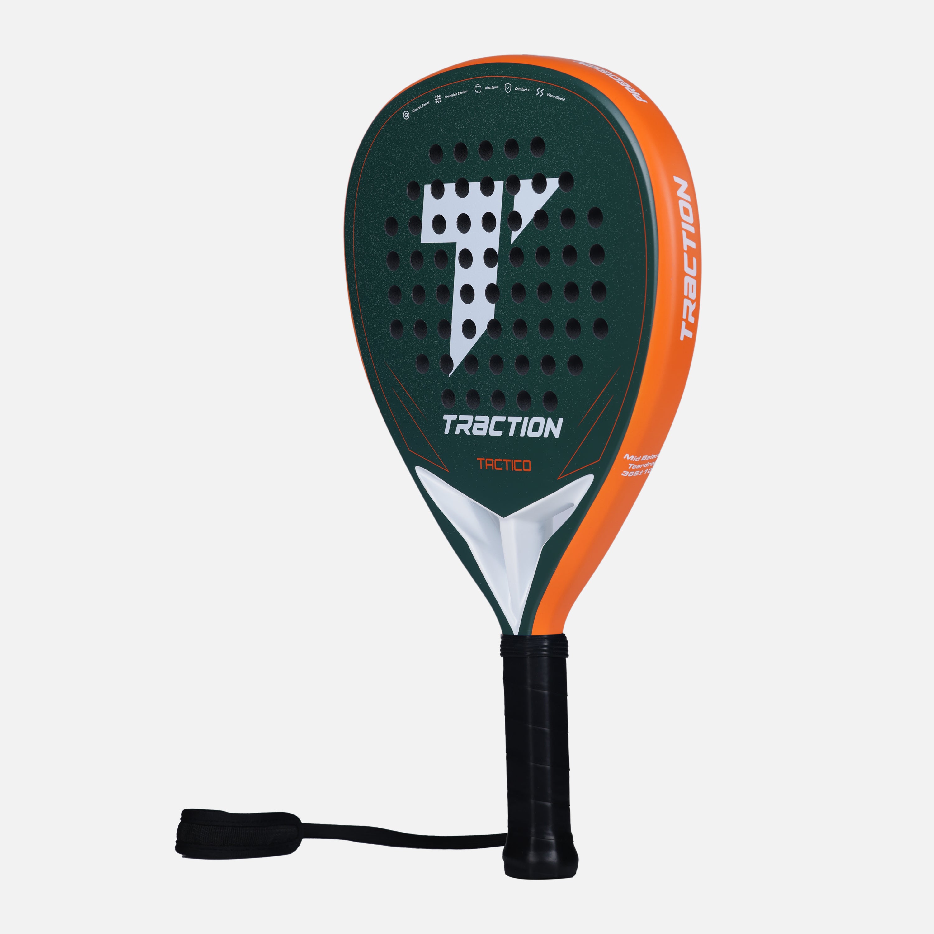 TÁCTICO is designed for players who win points through placement, patience, and intelligent transitions. Its teardrop shape and mid balance provide a balanced response for both defensive stability and controlled attacking play. The precision 12K carbon face delivers clean feedback and accurate placement, while the soft control foam absorbs pace for comfort and consistency under pressure. Solid in defense and composed in attack, the TÁCTICO rewards smart decision-making — from controlled lobs and aggressive volleys to precise viboras.